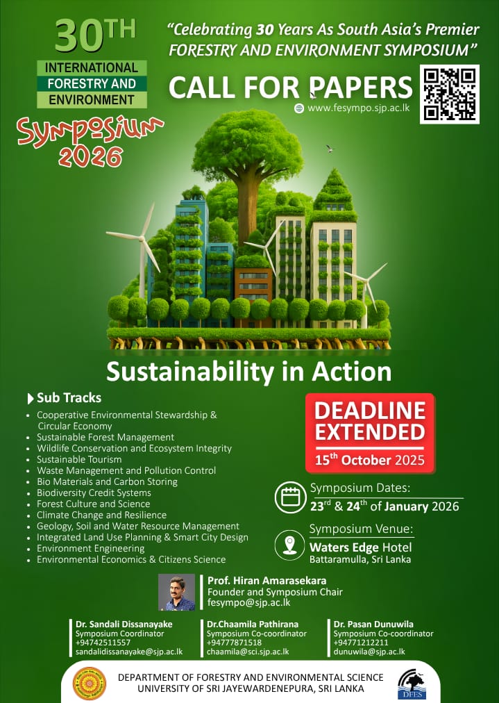 The Department of Forestry and Environmental Science, University of Sri Jayewardenepura proudly invites you to the 30th International Forestry and Environment Symposium 2026